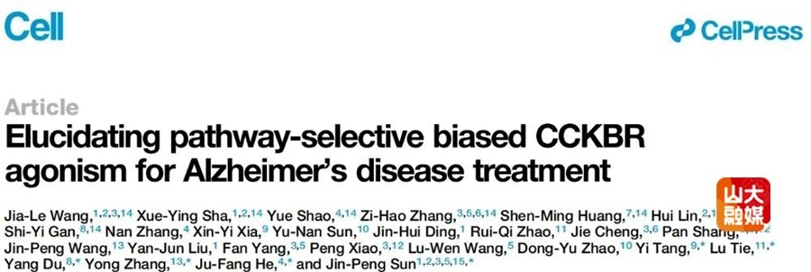 On November 20, a research team led by Professor Sun Jin-Peng from the School of Basic Medical Sciences Shandong University and Peking University, in collaboration with Professor He Ju-Fang from City University of Hong Kong, Professor Zhang Yong and Associate Professor Tie Lu from Peking University, Professor Du Yang from The Chinese University of Hong Kong, Shenzhen, and Professor Tang Yi from Beijing Xuanwu Hospital, published a research paper online in Cell titled "Elucidating pathway-selective biased CCKBR agonism for Alzheimer's disease treatment."