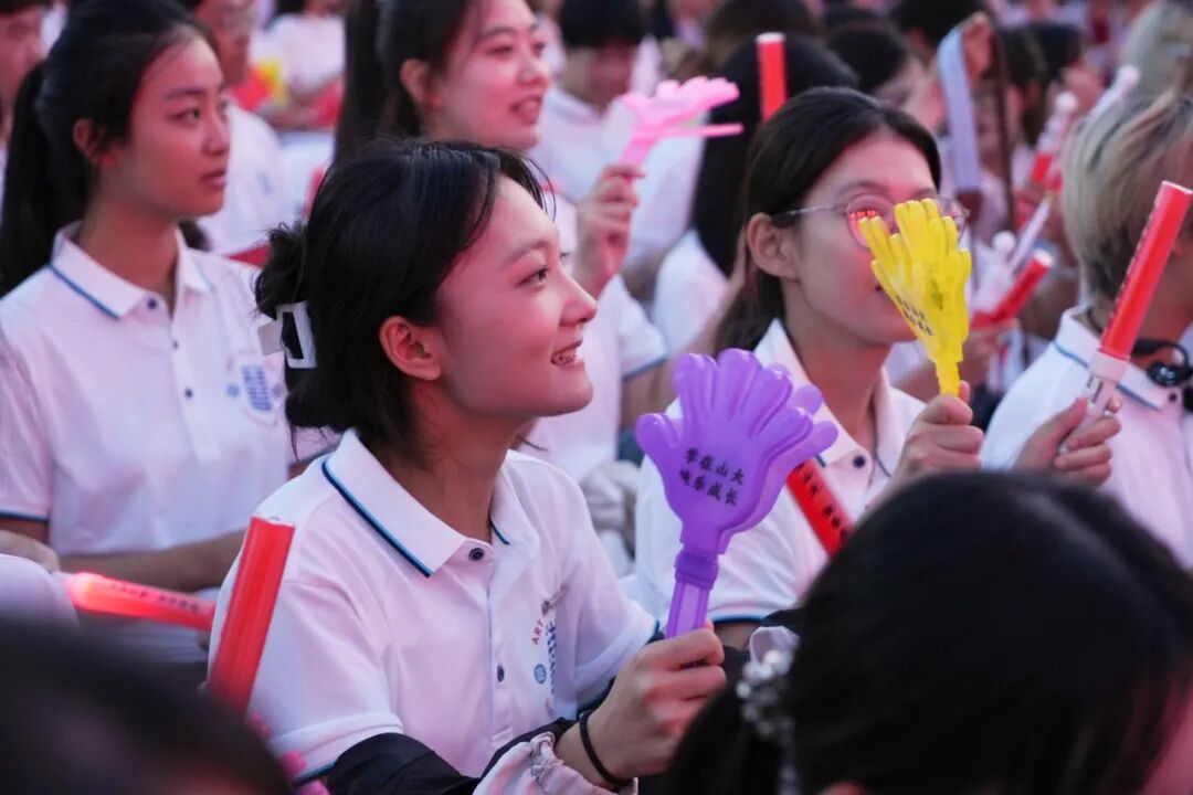 Freshmen eagerly watch the performances, waving glow sticks and applauding with clappers. [Photo/Shandong University]