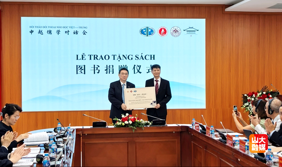 At the opening ceremony, Wu Zhen, Executive Vice President of SDU, presented a collection of Confucian classics to VASS, to support the establishment of its Confucianism library.