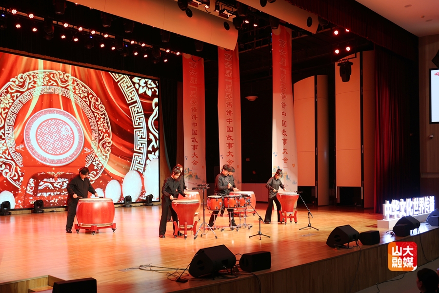 SDU students present an exciting drum and music show. [Photo/Shandong University]