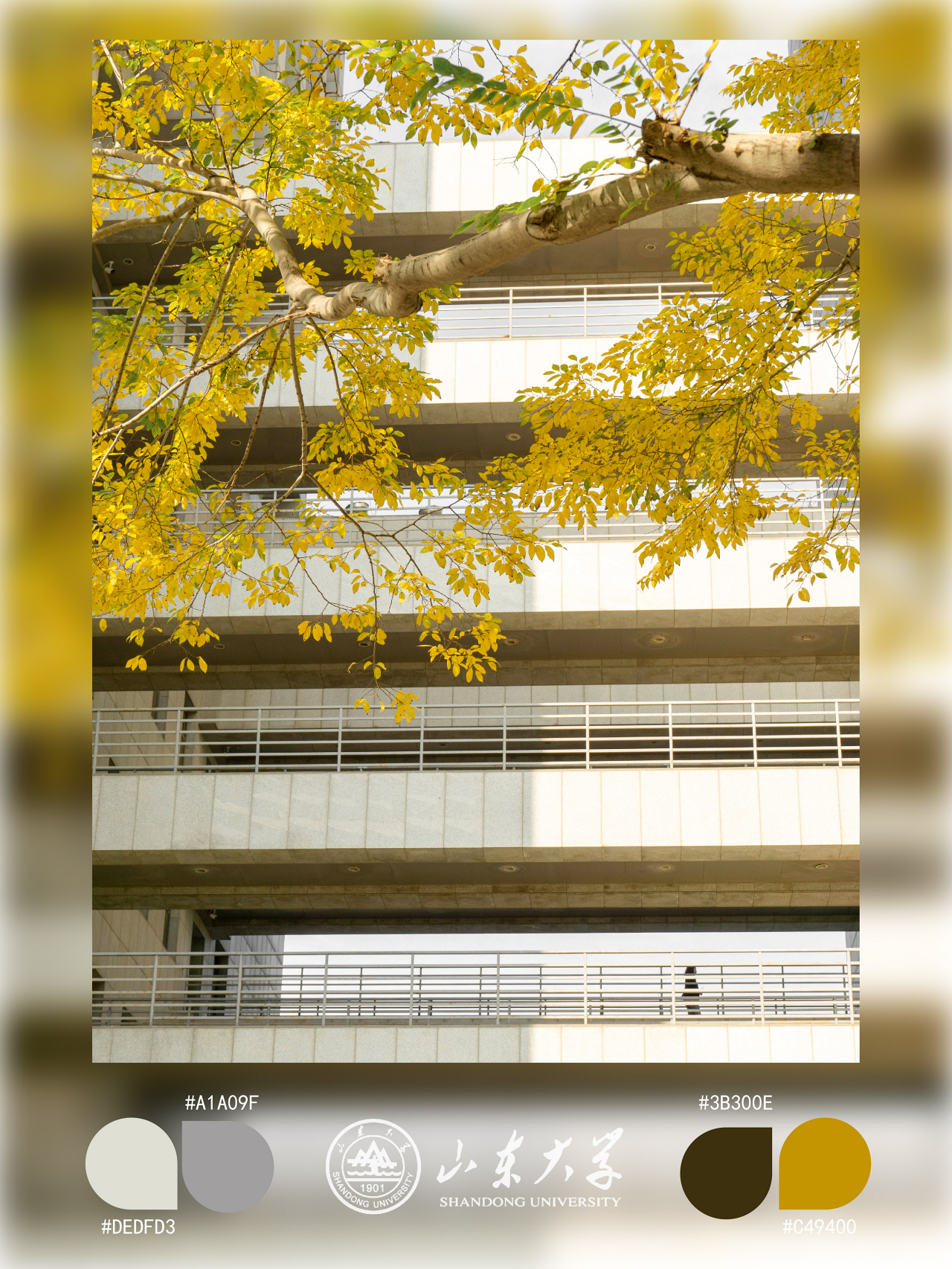 Ginkgo trees frame the white teaching building. [Photo/Shandong University]