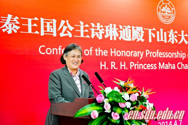 Princess Sirindhorn noted that Shandong is the hometown of Confucius and Mencius with a rich traditional culture, and SDU has a profound cultural background and cultivated many talents and expressed that she was very honored and happy to be an honorary professor of SDU.