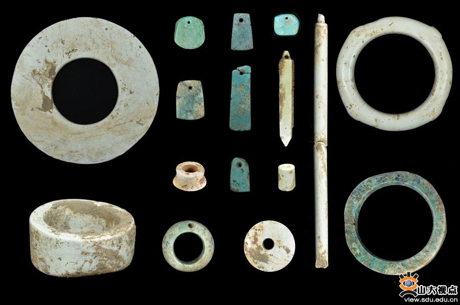 Various jade ornaments unearthed at the Jiaojia site. [Photo/sdu.edu.cn]
