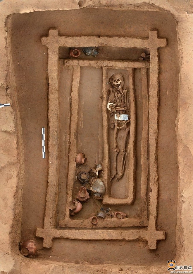 A tomb with three layers of coffins at the Jiaojia site. [Photo/sdu.edu.cn]