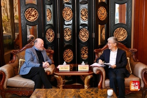 Shandong University President Li Shucai (R) meets with Professor Jack Joseph Dongarra, the winner of the Turing Award. [Photo/Shandong University]