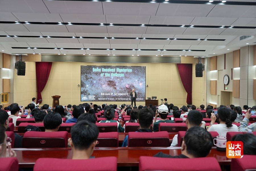 Professor Brian Schmidt delivers a speech titled Some Unsolved Mysteries of Astronomy on Oct 14. [Photo/Shandong University]