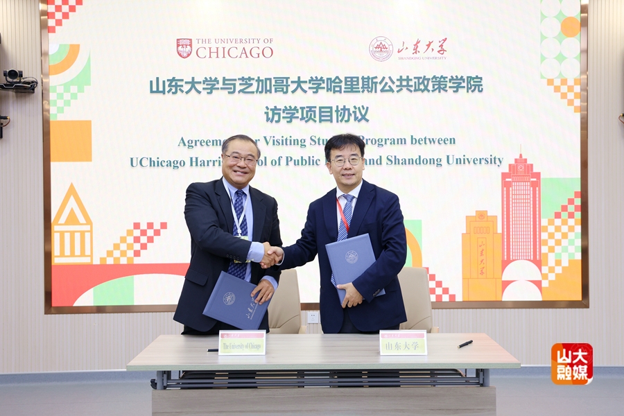 SDU and UChicago formalize their visiting student program with a signing ceremony. [Photo/Shandong University]