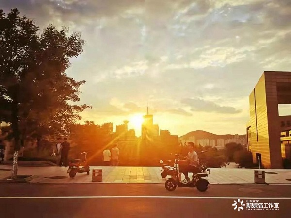 A bright sunset dyes the campus orange. [Photo/WeChat account: sdu-1901]